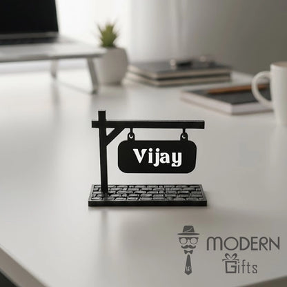 Make your desk truly yours with our Personalized Mini Name Stand. Designed with a sleek black stand and a hanging name plate, this compact desk accessory is perfect for adding a personal touch to your workspace. Whether it’s your office desk, study table, or home décor corner, this custom name board instantly upgrades the vibe with elegance and individuality.