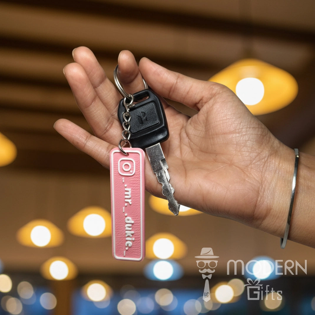 Carry your online identity with you everywhere! Our Personalized Instagram Handle Keychain is designed to make your social media name stylish and unique. Crafted with premium materials, this custom keyring features your Instagram username in bold, raised lettering with the iconic Instagram logo – perfect for gifting friends, influencers, or treating yourself.