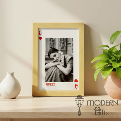 Celebrate your love story with our Customized King & Queen Couple Frames (Set of 2). Designed in a stylish playing card theme, these two frames feature the King for him and Queen for her, each personalized with your photo and name. A perfect pair that symbolizes togetherness and royalty, these frames make an ideal gift for couples on weddings, anniversaries, Valentine’s Day, or special occasions.