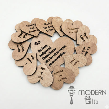This Love Message Theme is designed to express deep emotions through beautifully engraved wooden heart-shaped notes. Each heart carries a meaningful love message like “Forever & Always”, “Made for Each Other”, “Together Forever”, and more, making every piece emotionally special.