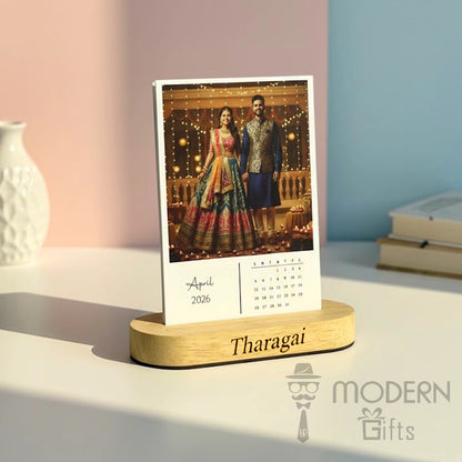 Celebrate your memories every month with our Personalized 12 Photos Calendar 2026 Stand. This unique desk calendar lets you add 12 of your favorite photos—one for each month—combined with a compact monthly calendar design. The stylish wooden stand adds a premium touch, making it perfect for your office desk, study table, or gifting purposes.